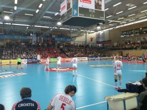 U redovima Zagreba nije bilo Mandalinića ni Stevanovića, a sastavu se priključio Arian Jović. Početak susreta bio je izjednačen iako se Veszprem povremeno odvajao na dva pogotka prednosti. Nakon deset minuta Veszprem je prvi otišao na plus četiri i tu prednost sačuvao do isteka prvih 30 minuta.