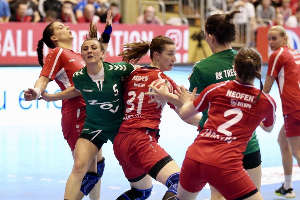 Prvo poluvrijeme ponudilo je malo pogodaka i tvrdu igru u obrani obiju ekipa. Ono što je također obilježilo prvih 30 minuta bilo je mnoštvo tehničkih pogrešaka s jedne i s druge strane. Podravka je otvorila s 2:0, ali Ana Toth sa svoja dva uzastopna pogotka vraća na 2:2.