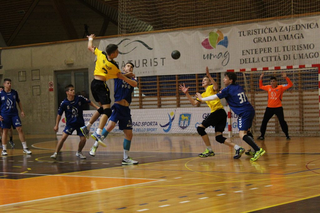 U borbi za 15. poziciju na završnici bolje je krenuo Umag koji je preko Benjamina Kneževića poveo. Ubrzo je Bjelovar izjednačio, ali se to dugo nije zadržalo. Umažani su uspjeli pobjeći i na +2 (12:10), no na odmor se ipak otišlo pri minimalnoj razlici. U drugom dijelu Bjelovar je uspio preokrenuti (20:18). Erik Vukotić vratio je Umag u igru i sa svoja tri gola odveo suigrače na 22:20. Uspjeli su to zadržati i do samog kraja pa je konačno bilo 25:24. Erik Vukotić zabio je osam golova kod Umaga, a na suprotnoj strani isti broj golova postigao je Grgur Končoda.