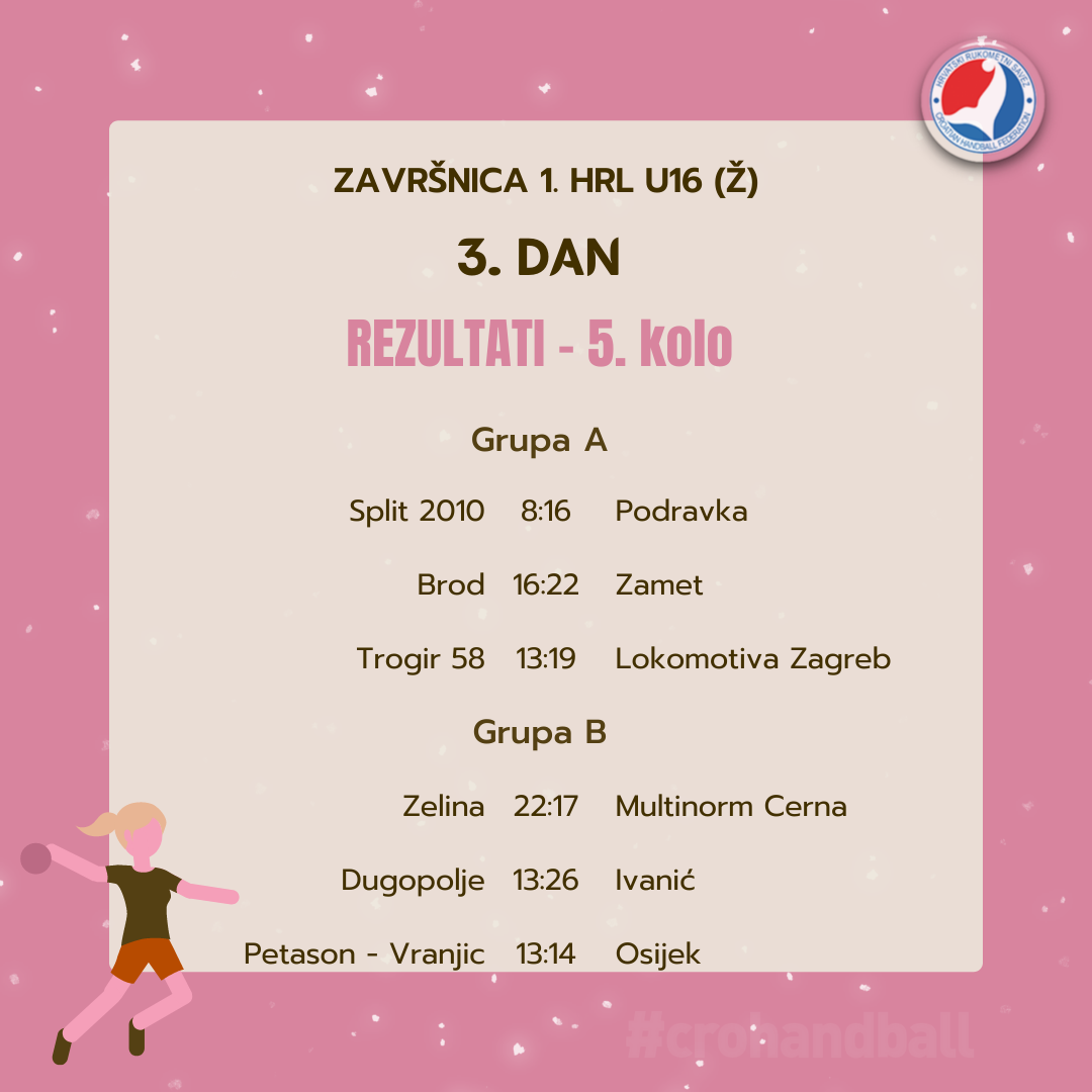 Uvjerljivu pobjedu u 5.kolu izborila je Podravka protiv Splita 2010, baš kao i Zamet protiv Broda, odnosno Lokomotiva Zagreb protiv Trogira 58. Tako su Zamet i Podravka iz grupe A osigurali nastup u polufinalu Završnice 1. HRL U16 (Ž).
