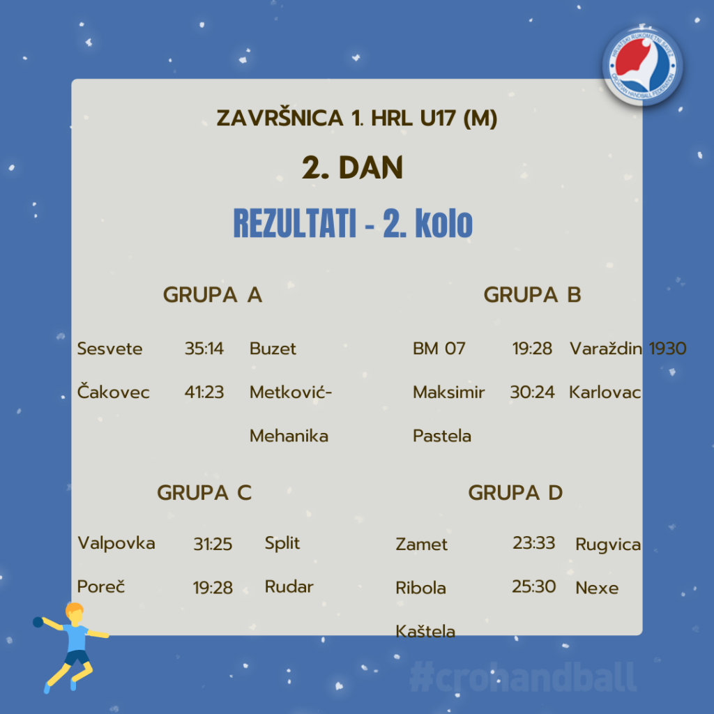I četiri ekipe skupine D danas su odigrale po dvije utakmice. Rugvica je u prvoj utakmici dana pobijedila Zamet 33:23. Druga utakmica 2. kola bila je između Ribole Kaštela i Nexea, a slavila je momčad iz Slavonije rezultatom 30:25. Nexe je i u 3. kolu došao do pobjede. Pobijedili su Zamet 29:22. U drugoj utakmici 3. kola igrali su Ribola Kaštela i Rugvica, a slavila je momčad s juga Hrvatske (29:22).