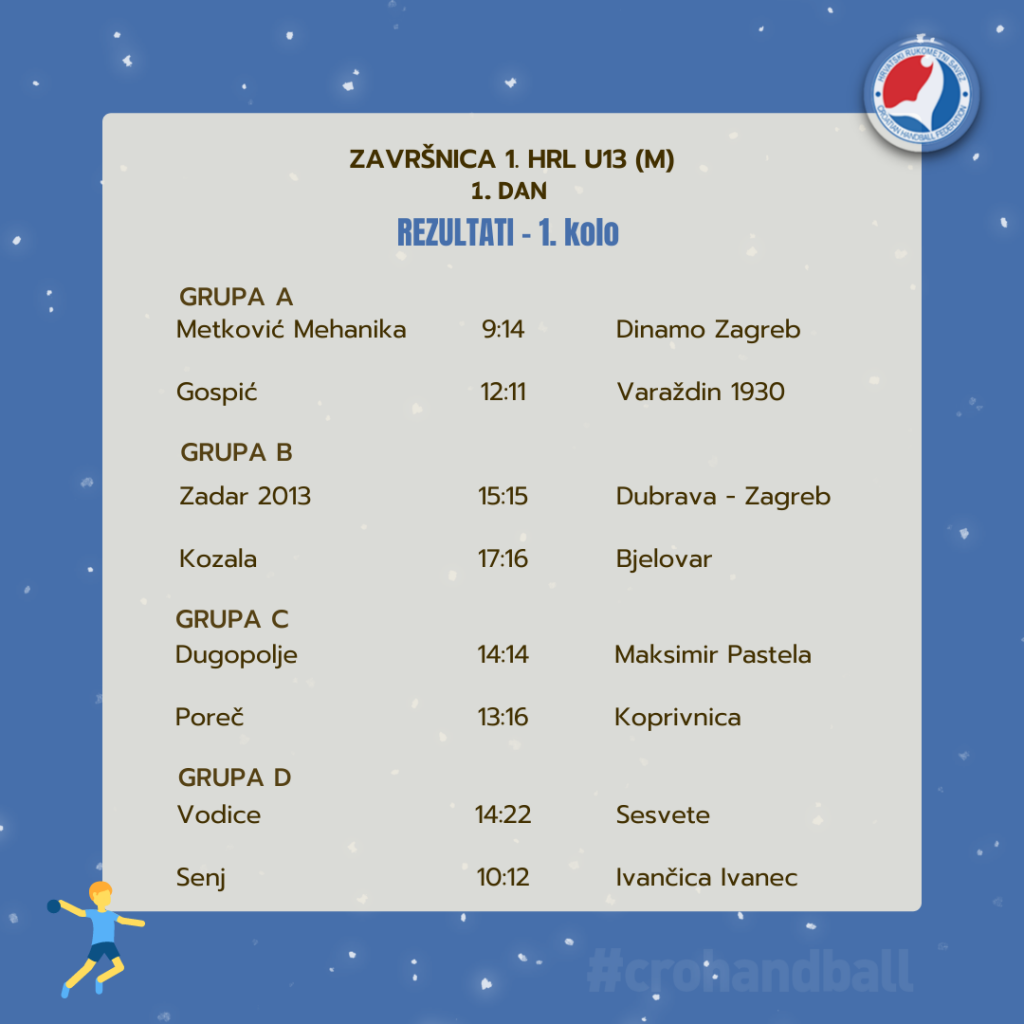 Dvadeset momčadi mladih hrvatskih rukometaša do 13. godina započelo je Završnicu Prvenstva Hrvatske za ovu sezonu. Prvog dana odigrana su po dva kola u svakoj od četiri skupine. Krenimo redom.