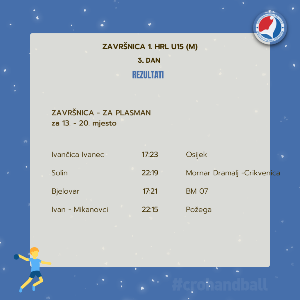 I zadnji dan Završnice gledajte uživo na YouTube kanalu Hrvatskog rukometnog saveza, a fotografije pronađite na Photodecku HRS-a.