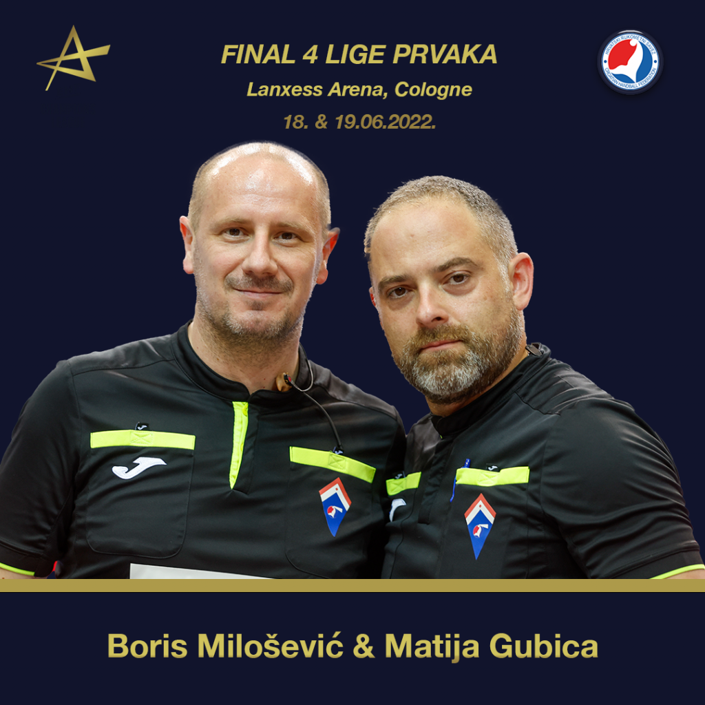 Kao što je poznato, Hrvatska će u Koelnu na EHF Final 4 Lige prvaka osim četiri igrača, imati i svoje suce. Bit će to sudački par Matija Gubica i Boris Milošević. Njima je ukazana posebna čast jer će suditi veliko finale u nedjelju, 18. lipnja u 18.00 sati.