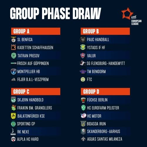 Samo dva dana nakon dramatičnog uzvratnog susreta protiv Azoty Pulawya u kojem su nadoknadili šest pogodaka zaostatka iz prvog susreta, rukometaši Nexea saznali su suparnike u skupini EHF Europske lige. Za prolazak u nokaut fazu, Nexe će se boriti sa Skjern Handboldom, Fraikin BM, Granollersom, Balatonfuredijem KSE, Sportingom CP i Alplom HC Hard.