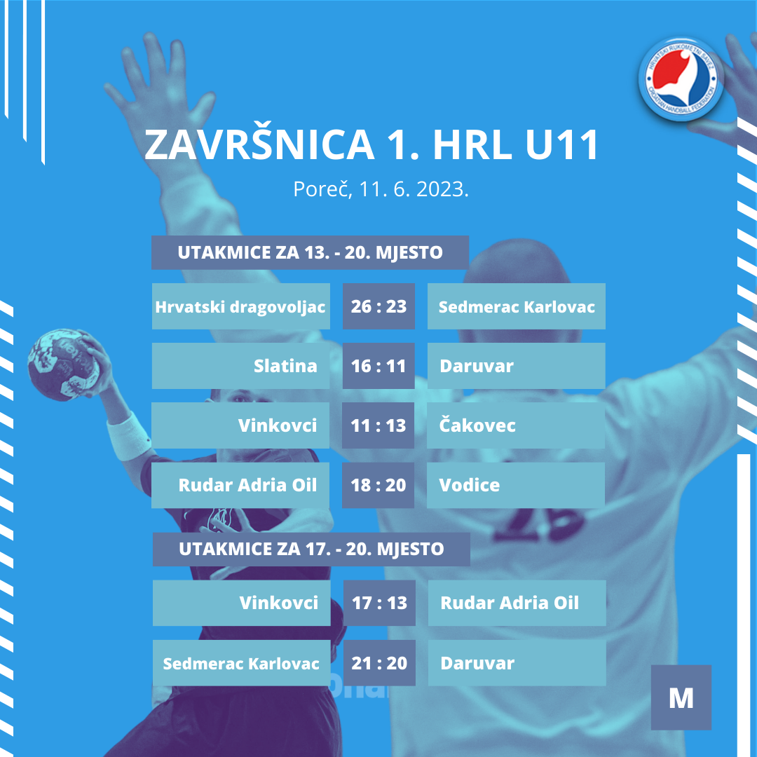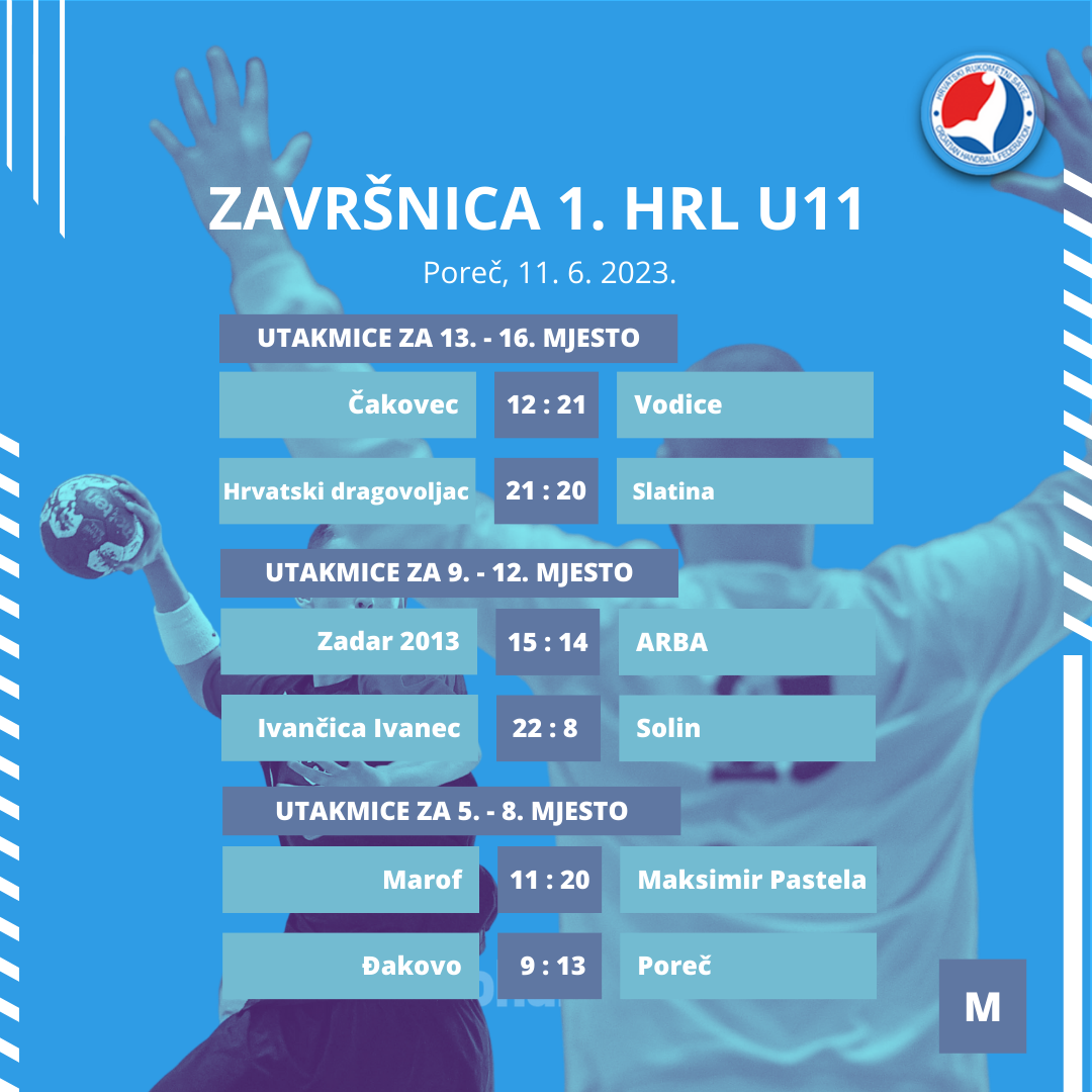 Do kraja odigrano je još osam utakmica za plasman. U borbi za 17. do 20. mjesto, Vinkovci su pobijedili Rudar Adria Oul 17:13, a Sedmerac Karlovac je golom devet sekundi prije kraja slavio protiv Daruvara. Konačni rezultat bio je 21:20. U dvije utakmice za poredak od 13. do 16. mjesta slavile su Vodice i Hrvatski dragovoljac. Dečki iz Vodica pobijedili su Čakovec 21:12, dok je Hrvatski dragovoljac s minimalnih 21:20 bio bolji od Slatine. Zadar 2013 pobijedio je ekipu ARBA-e u utakmici za poredak od 9. do 12. mjesta, a u drugom susretu Ivančica Ivanec bila je uvjerljiva protiv Solina. Bilo je 22:8. Četiri ekipe koje su poražene u četvrtfinalnim susretima odigrale su dvije utakmice za poredak od 5. do 8. mjesta. Maksimir Pastela pobijedila je Marof (20:11), a Poreč je bio bolji od Đakova (13:9).