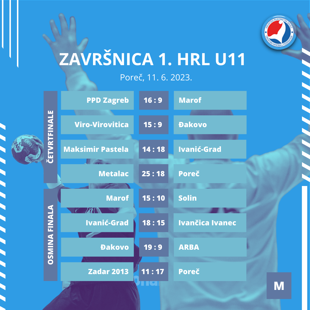 Treći dan Završnice U11 otvoren je utakmicama osmine finala. U ta četiri dvoboja pratili smo borbu između drugoplasiranih i trećeplasiranih momčadi svake skupine. U prvom susretu Marof je s 15:10 svladao Solin, a zatim je Ivanić-Grad bio bolji od Ivančice iz Ivanca rezultatom 18:15. Đakovo je s plus 10 pobijedilo ARBA-u (19:9), a Poreč je s 17:11 slavio protiv Zadra 2013.