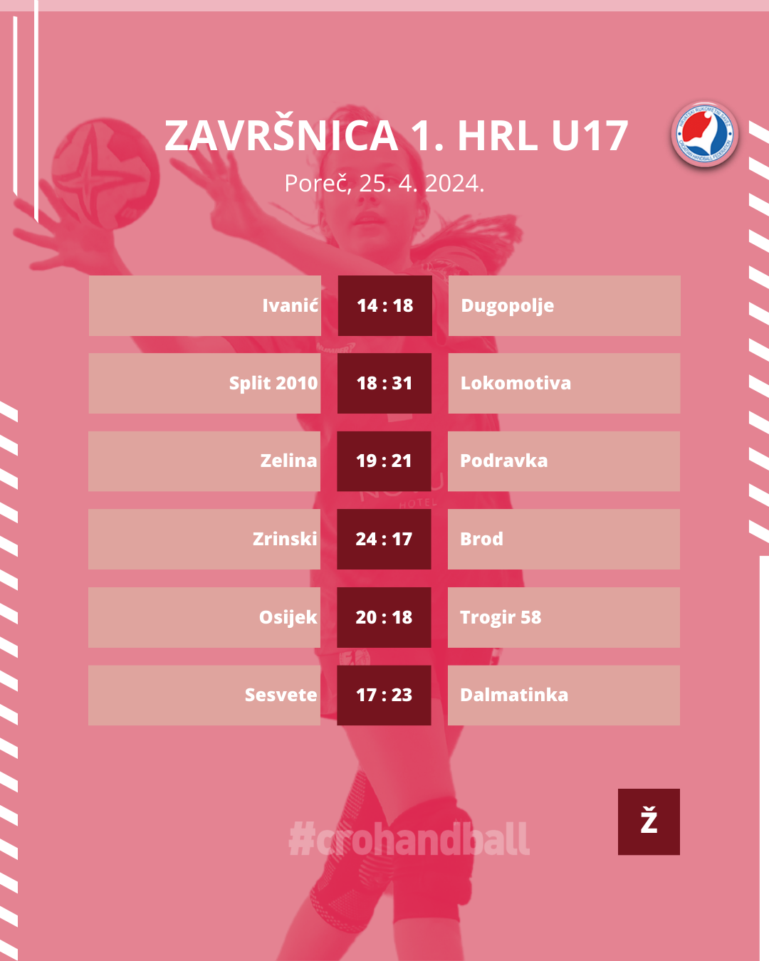 Krenula je prva ovogodišnja završnica. Najbolje hrvatske rukometašice do 17 godina (rođene 2006. i mlađe) danas su odigrale prva dva kola i prvih 12 utakmica. Podsjetimo, na Završnici sudjeluje 12 ekipa koje su podijeljene u dvije skupine, a tko će ponijeti titulu najboljih u državi, saznat ćemo u nedjelju.