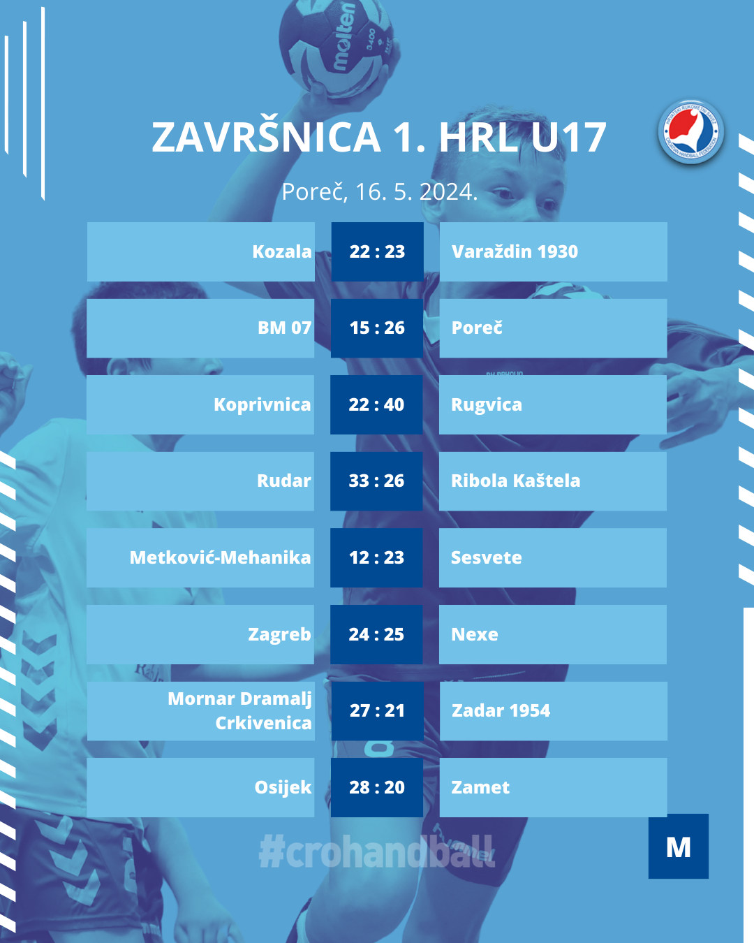 Sve fotografije drugog dana Završnice mogu se pronaći na Photodecku HRS-a, a utakmice četvrtfinala i borbe za plasman od 9. do 16. mjesta mogu se uživo pratiti na YouTube kanalu HRS-a.