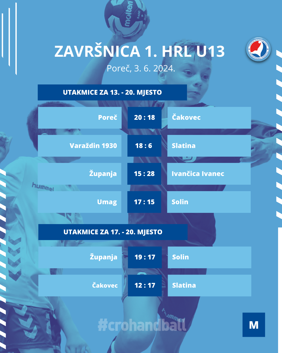 Sutra nas čeka posljednji dan, posljednjih 12 utakmica, a to uključuje, naravno, i veliko finale. Sve utakmice možete pratiti putem livestreama na našem YouTube kanalu, a sve fotografije potražite na Photodecku HRS-a.