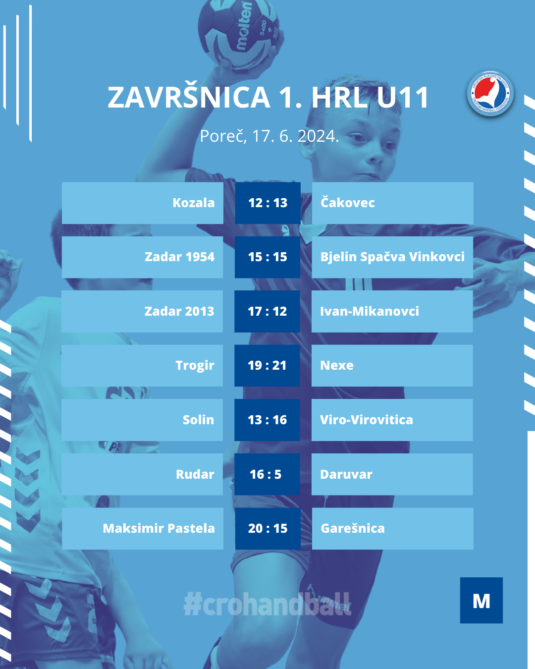 Drugog dana Završnice za rukometaše do 11 godina pratili smo novih 20 utakmica. A s tih 20 utakmica mladi igrači, odigrali su svih pet kola i zaključili su susrete u skupinama te ih sutra čekaju osmina finala, četvrtfinala i utakmice za plasman. Podsjećamo, izravan plasman u četvrtfinale izborili su osvajači skupina, drugo i trećeplasirani sutra igraju osminu finala, dok će posljednje dvije ekipe u borbu za plasman.