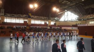 Već na samom staru domaćin je vodstvom 5:1 poslao jasnu poruku Kutinjanima, da nemaju što tražiti u tom susretu. Ali gosti su se relativno brzo oporavili od tog slabog početka i uskoro uhvatili priključak te nekoliko puta bili na minus tri (6:3, 7:4, 8:5). Ali bila je to još uvijek rana faza utakmice u kojoj domaćin nije bio do kraja posložen. Kad je to napravio, Moslavina se našla u ozbiljnom zaostatku (13:6). Ipak, nisu gosti posustali. Još jedanput su se vratili u utakmicu, lijepom završnicom prvoga dijela, s tri pogotka u nizu te tako stigli na četiri pogotka minusa (16:12).