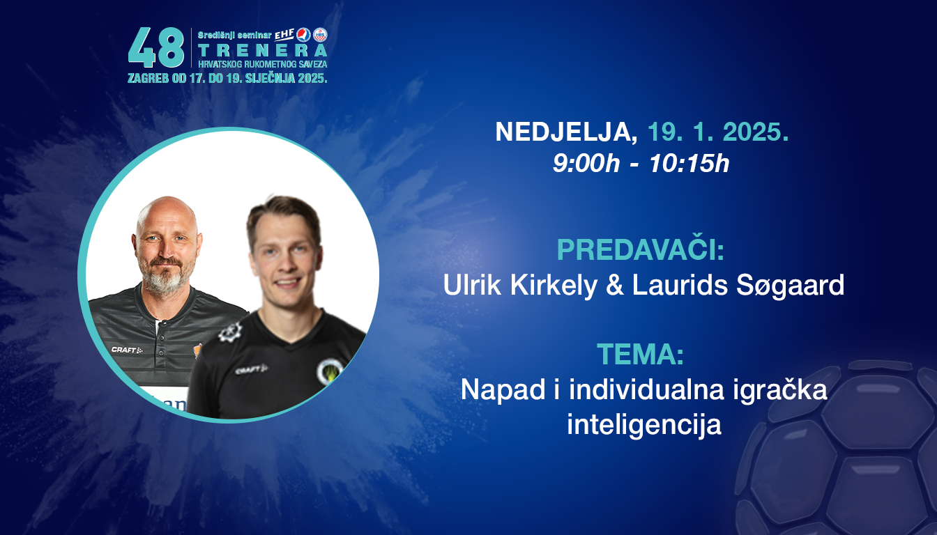 Trener Søgaard na 48. Seminaru trenera prvo predavanje održat će u subotu, 18. siječnja u 9:00, a tema tog predavanja je Individualni TE-TA elementi obrane i kompetencije (u timskom okruženju). Drugo predavanje na rasporedu je u nedjelju, 19. siječnja također u 9:00. Tema će biti Napad i individualna igračka inteligencija.