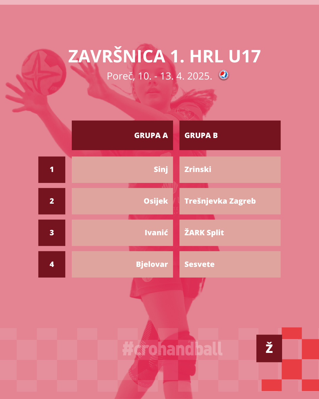 S dolaskom travnja ulazimo u najuzbudljiviji dio rukometne sezone – vrijeme je za završnice! Tradicionalno, prve u Poreč, odnosno u predivnu Žatiku, dolaze najbolje hrvatske rukometašice do 17 godina koje će otvoriti ovosezonski natjecateljski spektakl.