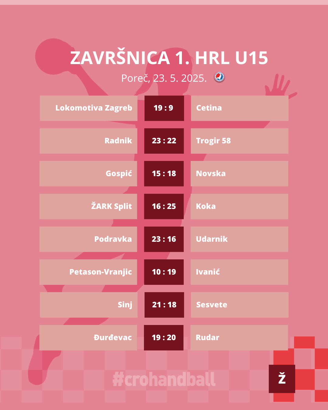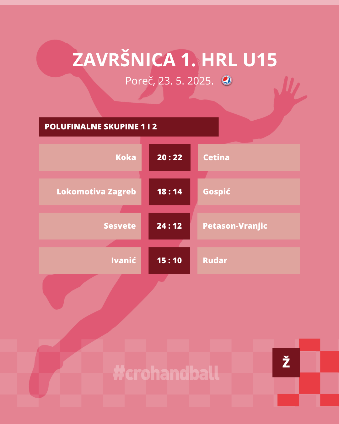 Drugi dan Završnice za rukometašice do 15 godina ponudio nam je 16 sjajnih utakmica i mogli smo uživati u velikom broju sjajnih poteza, golova i obrana. Prijepodne je bilo rezervirano za posljednje kolo u skupinama, dok su se popodne u dvoranama Finida i Veli Jože odigrale prve utakmice u polufinalnim skupinama i grupama za poredak.
