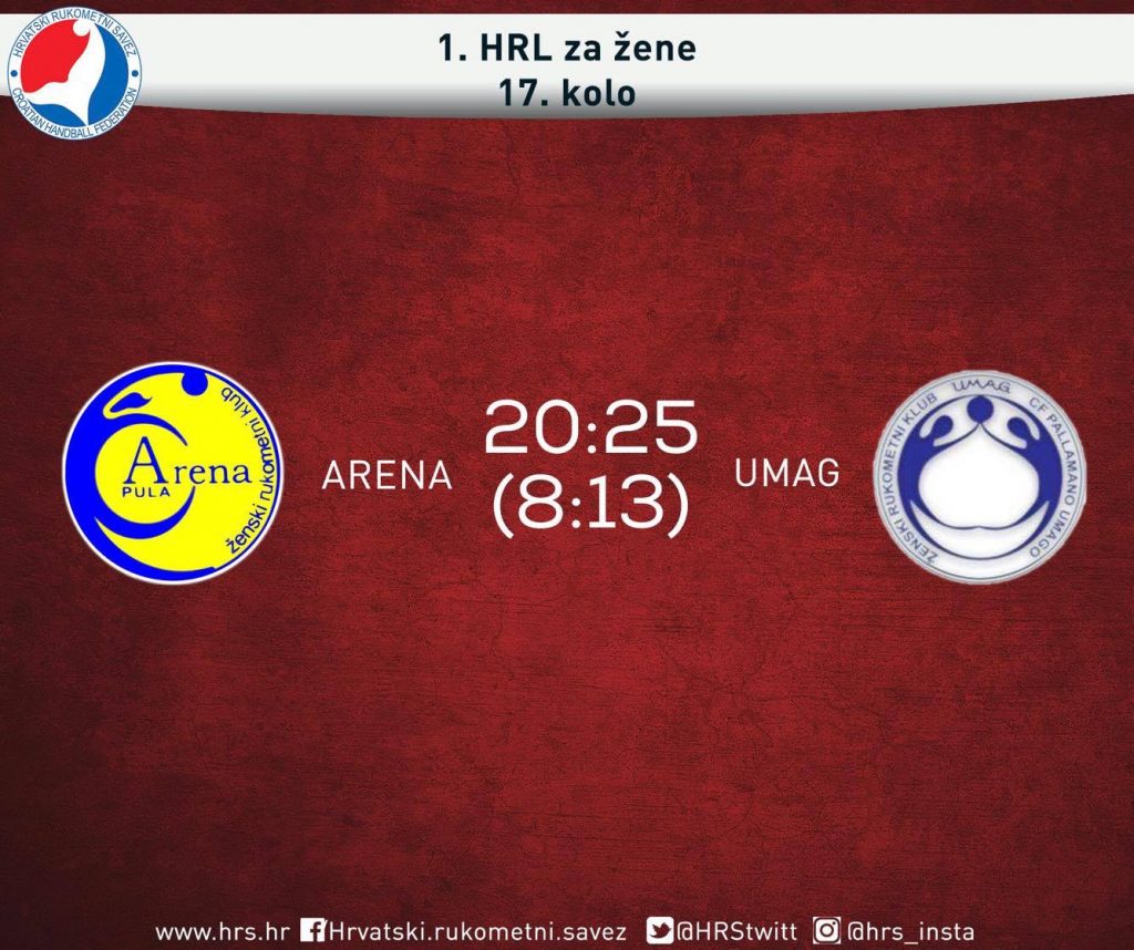 Rukometašice Arene iz Pule u 17. kolu 1. HRL za žene na svojem su terenu ugostile istarske susjede iz Umaga.…